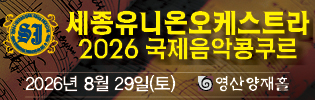 공지사항안내2026 유니온오케스트라 국제음악콩쿠르 콩쿠르 참가신청 ●일시 : 2026년 8월29일(토) ●장소 : 영산양재홀 ●주최 : 재단법인 세종국제예술문화재단 콩쿠르 참가신청 콩쿠르 참가신청리스트